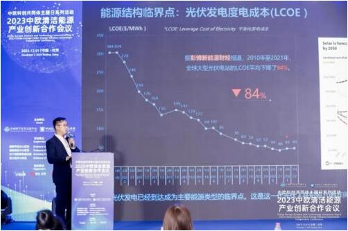 12月1日,2023中歐清潔能源產業創新合作會議于北京召開。本次會議以促進中歐清潔能源科技交流與合作為宗旨,邀請了中歐清潔能源領域企業代表、歐洲多國駐華使領館大使或參贊、清潔能源領域知名專家學者等參會,共同探討與分享中歐清潔能源先進科技和優秀合作案例。天合光能受邀出席此次論壇,發表了《天合光能210R黃金尺寸價值引領,共建組件標準化生態》的主題演講,解析光伏行業的前沿技術和設計趨勢,并分享了天合光能助力歐洲企業實現凈零碳目標的優秀案例。